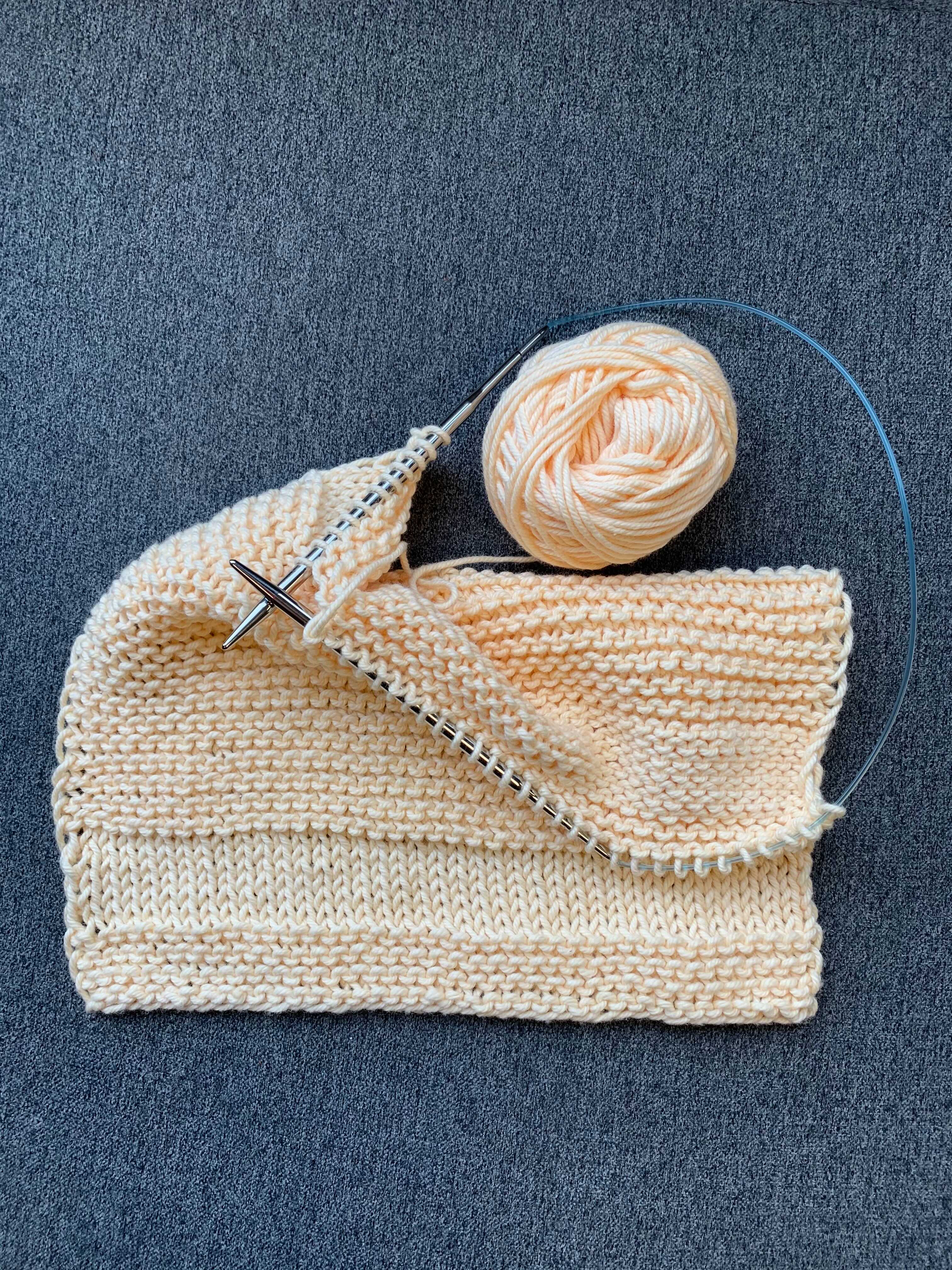 Materials needed: size 8 needles (straight or 24" circular) and tapestry needle