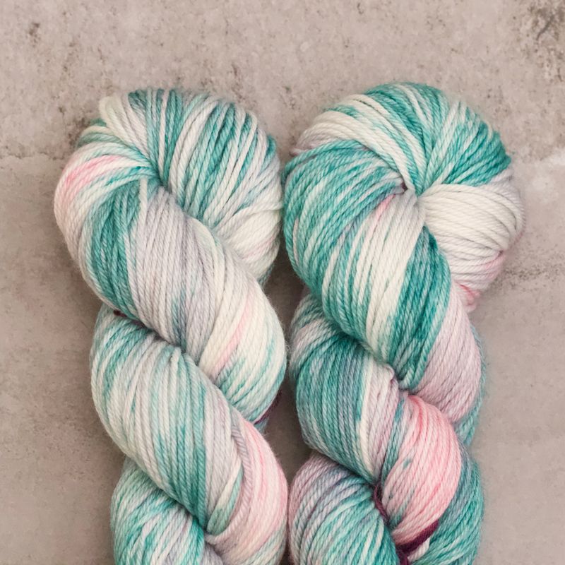 *Barker Wool yarns have dramatic assigned-pooling and was created as a collaboration between MadTosh and Dawn Barker, knitwear designer.